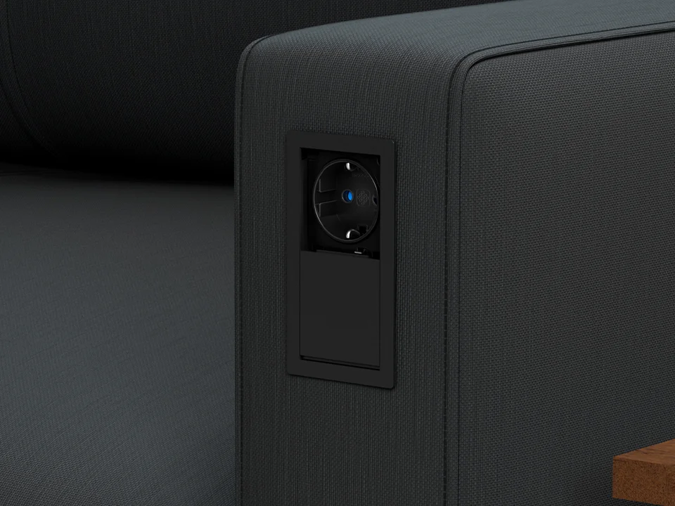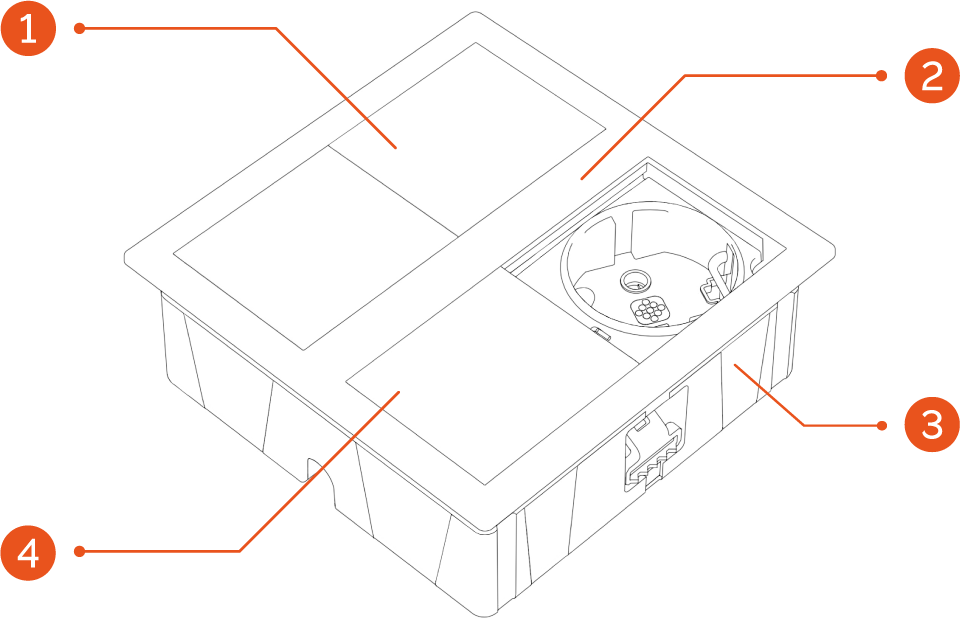 - Il particolare sistema di apertura permette di scoprire le prese solo quando necessario, proteggendo così la presa inutilizzata da polvere, detriti e acqua.